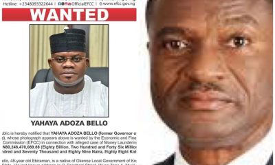 The Economic and Financial Crimes Commission (EFCC) Thursday declared wanted the immediate past governor of Kogi State, Yahaya Adoza Bello. It said Bello, 48, was wanted...