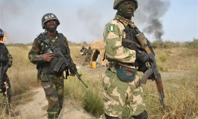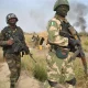Troops of the Nigerian Military conducting search and rescue operations in Okuoma community in Ughelli LGA for the killers of 18 officers and soldiers of the...
