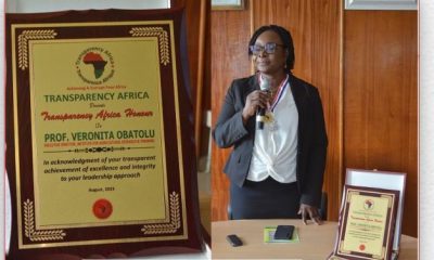 The Executive Director of the Institute of Agricultural Research and Tr aining (IAR&T), Ibadan, Prof. Veronica Obatolu was recently conferred with a Transparency Africa Honor, as...