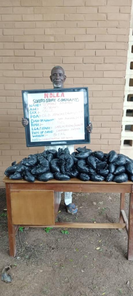 Meanwhile, in Sokoto, a 90-year-old retired soldier, Usman Adamu was arrested on Wednesday 3rd August in Mailalle, Sabon Birni LGA for supplying bandits illicit drugs. At the time of his arrest, the suspect was caught with 5.1kg cannabis sativa.