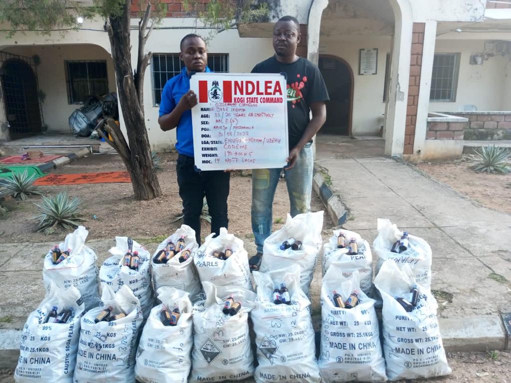 In Zamfara, NDLEA operatives on Thursday 4th Aug intercepted a truck from Benin, Edo state enroute Sokoto with 50,000 tablets of Diazepam owned by a drug dealer, Umaru Attahiru, while in Kogi, 14 sacks containing 1,376 bottles of codeine based syrup weighing 190.4kg were seized along Okene-Abuja highway on Wednesday 3rd Aug. The exhibits were found in a delivery bus coming from Onitsha, Anambra and heading to Abuja. Follow up operation in Abuja same day led to the arrest of Jude Ikenna and Ozoemene Cornelius.