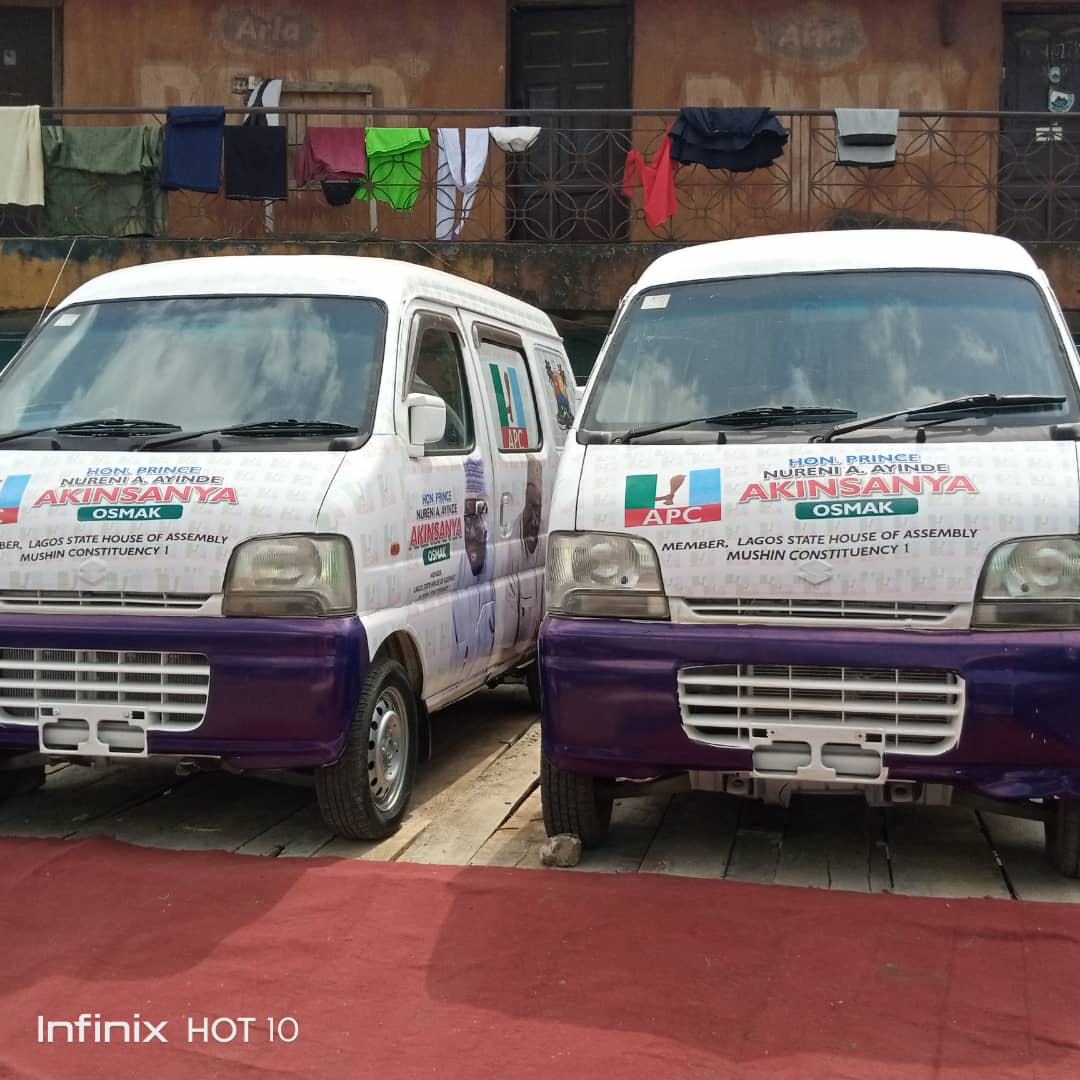 Recipients of gifts of two mini-busses that were given out the event by the lawmaker, former Chairman, Ward A1 of the All Progressives Congress (APC) in Odi Olowo, Mushin, Mrs. Bilikisu Olakitan and a chairman of the party in Olateju area of Mushin, Mr. Hamzat Rilwan could not hide their joy.