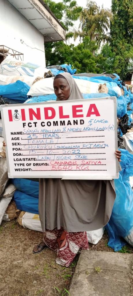 In the FCT, operatives on Saturday 15th October stormed a village known as Chukuku, which is about 10 kilometers from Gwagwalada where they raided a large cannabis warehouse. A total of 510 jumbo bags of the illicit substance weighing 5, 640kgs were recovered from the store and a nursing mother in charge, Saadatu Abdullahi, 35, was arrested.