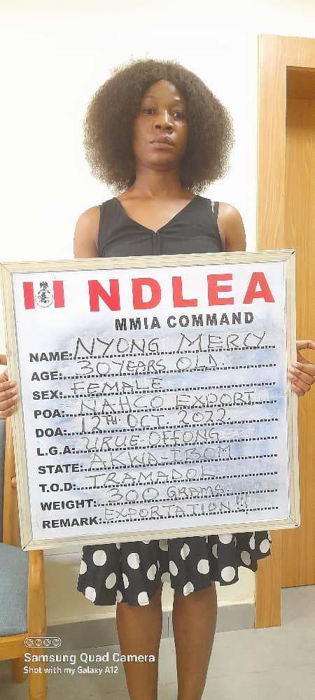 Meanwhile, a 200-level student of Mass Communication at National Open University of Nigeria (NOUN), Ms. Mercy Nyong, 30, was on Wednesday 12th Oct arrested at the Murtala Muhammed International Airport, MMIA, Ikeja Lagos for attempting to export 300grams of tramadol 225mg concealed in incense products going to Dubai, UAE.