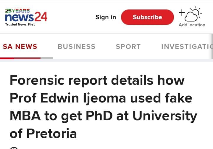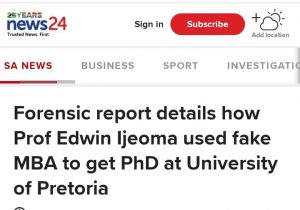 A Nigerian Professor, Mr Edwin Ijeoma, who left the country for a greener pasture in South Africa in 1998 to study at the University of Pretoria, might have bitten more than he could chew and is now paying dearly for his misdemeanour, when he thought things would work well for him in his new country.