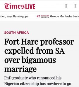 Professor, Who Renounced Nigerian Citizenship, Found Guilty Of Bigamy, Expelled From South Africa