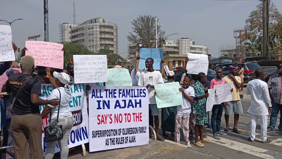 Some residents of Ajah Community in Lagos State have staged a peaceful protest to the Governor’s office with a Save Our Soul (SOS) message to Governor Babajide Sanwo-Olu of the state over alleged planned imposition of a member of the Olumegbon family as the new Ajah traditional ruler.