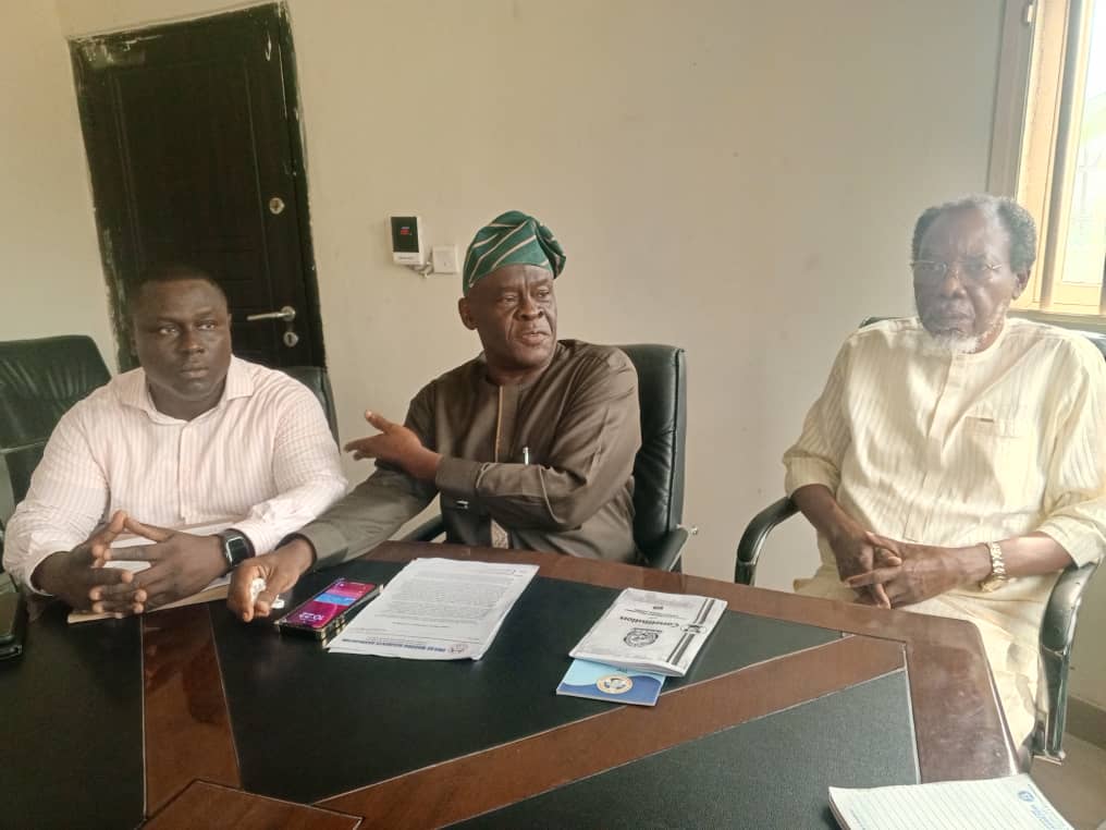 L-R: Mr Olayiwola Bamgboye, Public Relations Officer, University of Lagos (UNILAG) Magodo Residents Association (UMRA) Magodo; Mr Oluwole Sowole, Chairman, UMRA and Prof. Tunde Makanju, unofficial member, during a news conference on Monday in Lagos.