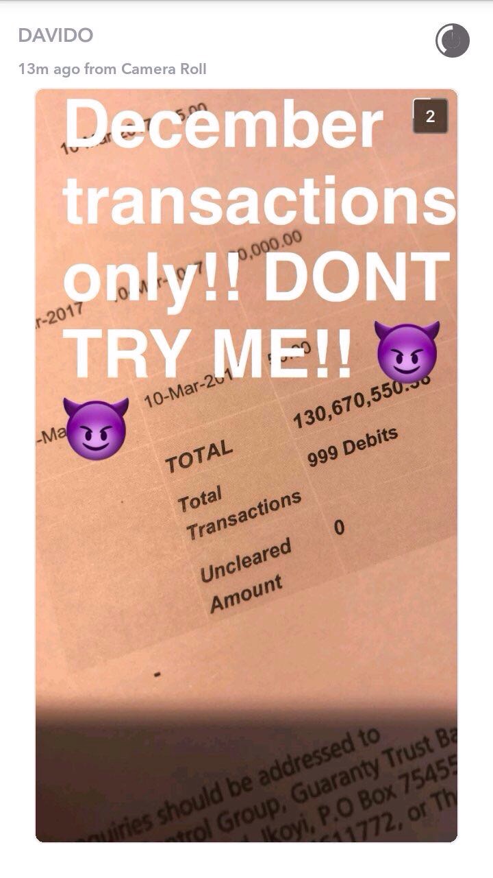 Davido then clapped back at Hushpuppi’s rant posting a screenshot of his December 2016 earnings amounting to over 130 million Naira. Telling him to shut up and leave Nigeria because he would have zero breathing space.