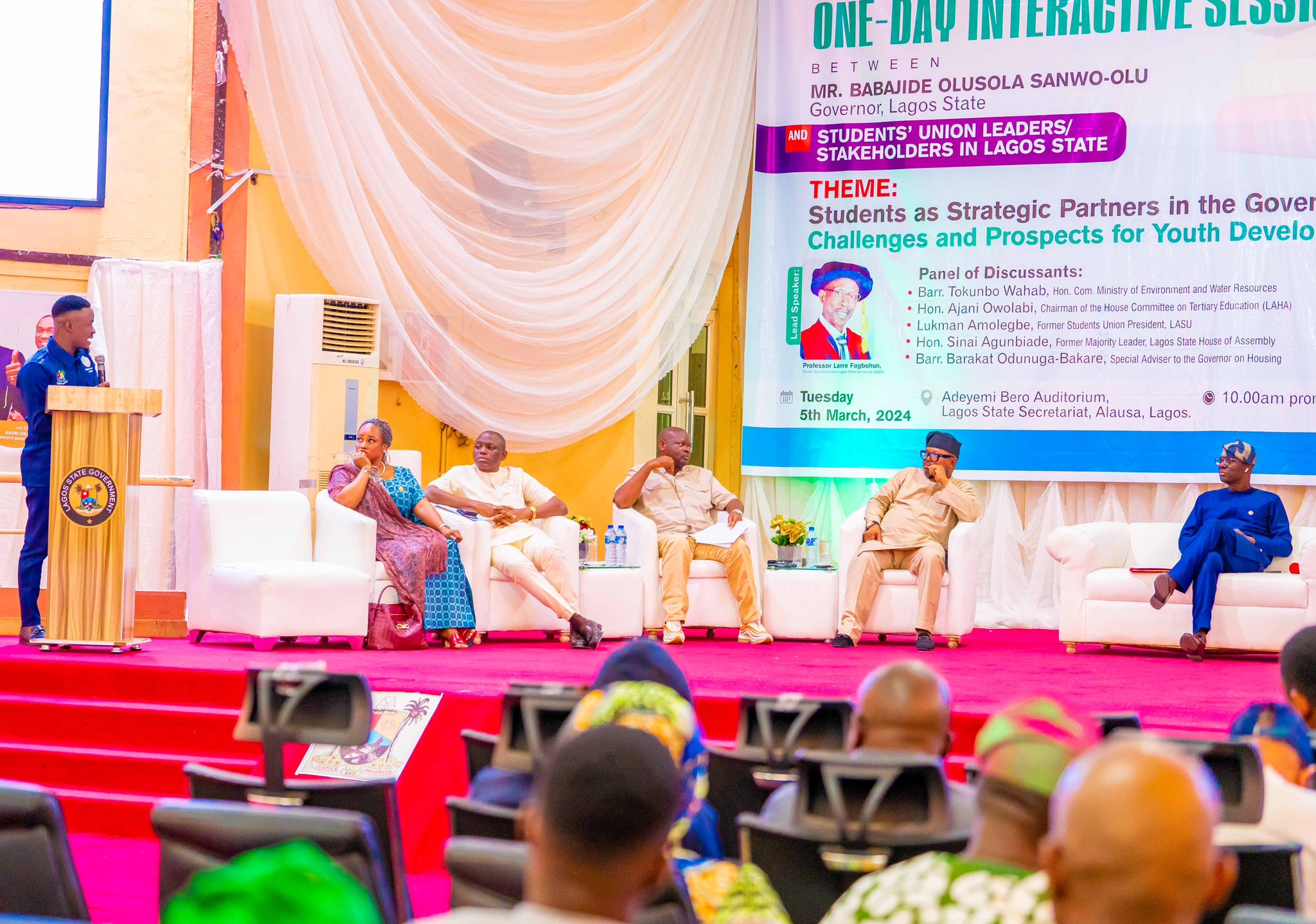 Governor Sanwo-Olu spoke during a One-Day Interactive Session between him and Students Union Leaders and Stakeholders in Lagos State, organised by the Ministry of Tertiary Education, with the theme: “Students as Strategic Partners in the Governance Process: Challenges and Prospects for Youth Development.”