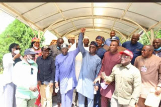The Senator-Elect, Lagos East, Mr Tokunbo Abiru and Kosofe II Assembly-Elect, Hon. Femi Saheed visited the National Leader of the All Progressives Congress, Asiwaju Bola Tinubu on Sunday alongside other party leaders led by the Party Chairman, Hon. Babatunde Balogun, after they were declared winners of the election by the Independent National Electoral Commission (INEC).