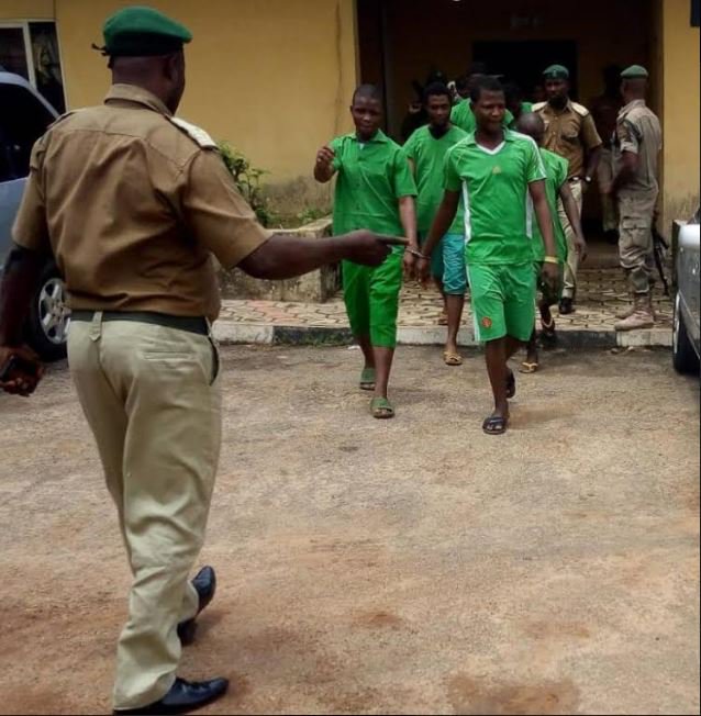 The seven young men: Jimoh Sodiq a.k.a Akamo, Blessing Ogunlade, Yomi Balogun a.k.a Regal, Oluwaseun Oluwalola a.k.a Iyan, Akeem Adedayo, Oso John Omoniyi a.k.a Bosco and Sodiq Babatunde were found guilty of armed robbery, conspiracy to commit murder and for illegal possession of firearms.