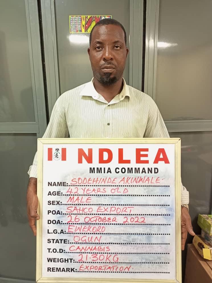 On the same day, operatives at the SAHCO export shed intercepted cans of tomato paste going to the United Kingdom. A thorough search of the consignment revealed that the tomato cans were used to conceal 36 pellets of cannabis with a gross weight of 21.30 kilograms while a cargo agent, Sodehinde Akinwale has been arrested in connection with the seizure.