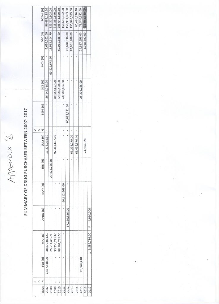 He added that the quarterly drugs and consumables presented for first and second quarters of 2017 were not supplied.