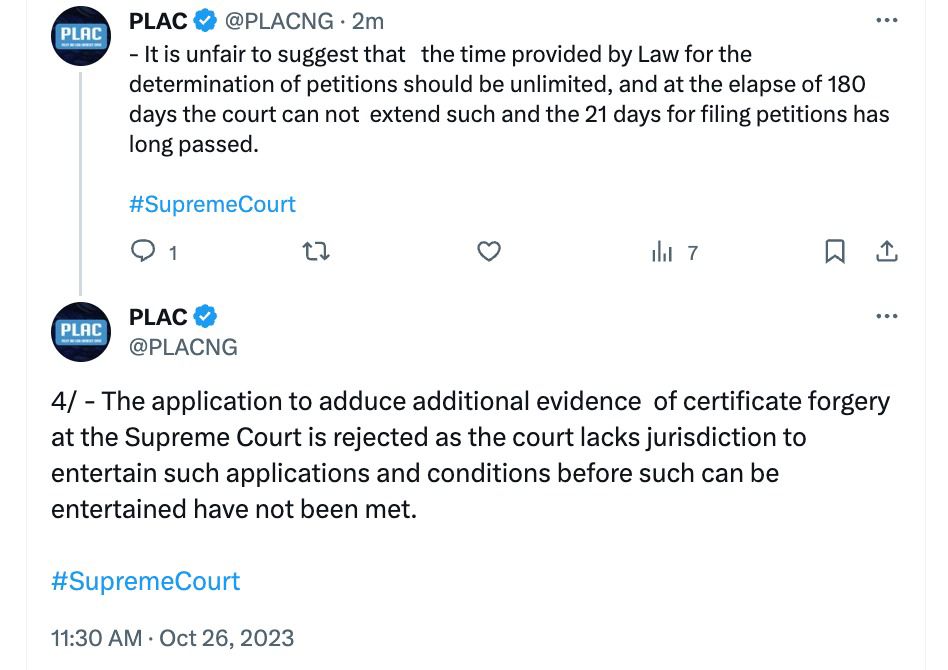The Supreme Court has dismissed PDP’s Abubakar Atiku’s forgery case against President Bola Ahmed Tinubu.