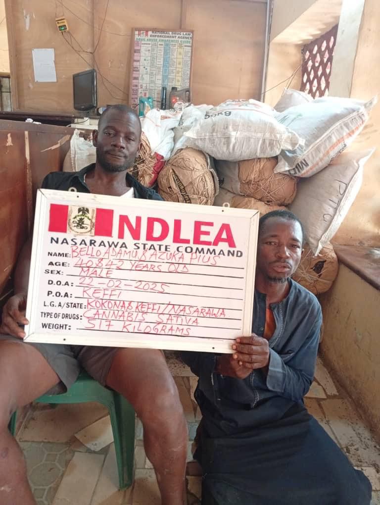 In Nasarawa state, NDLEA operatives on Saturday 22nd February arrested two suspects: Bello Adamu, 40, and Pius Azuka, 42 at Kokona/Keffi with 517kg of skunk, while two other suspects: Usman Ruwa, 43, and Yunusa Haruna, 45, were nabbed in a Toyota Corolla car conveying 62.7 kilograms of skunk along Sabon Asibiti road Kontagora, Niger state on Thursday 20th February.
