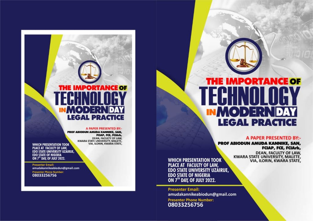 We have also been able to explain the various importance of technology to the modern day legal practice and the need for legal-practitioner to harness the importance of technology to their modern day to day legal-practice.
