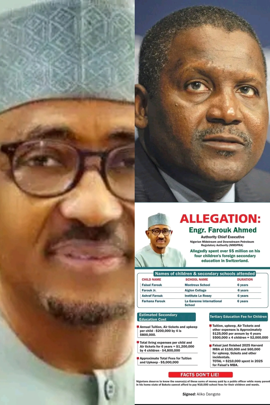 At a press briefing in Lagos, Dangote did the unusual for people in his class: he named names. The target? Engr. Farouk Ahmed, Chief Executive of the Nigerian Midstream and Downstream Petroleum Regulatory Authority (NMDPRA). The charge? Spending $5 million on the secondary education of four children in Switzerland, an amount Dangote insists is incompatible with a public servant’s salary.