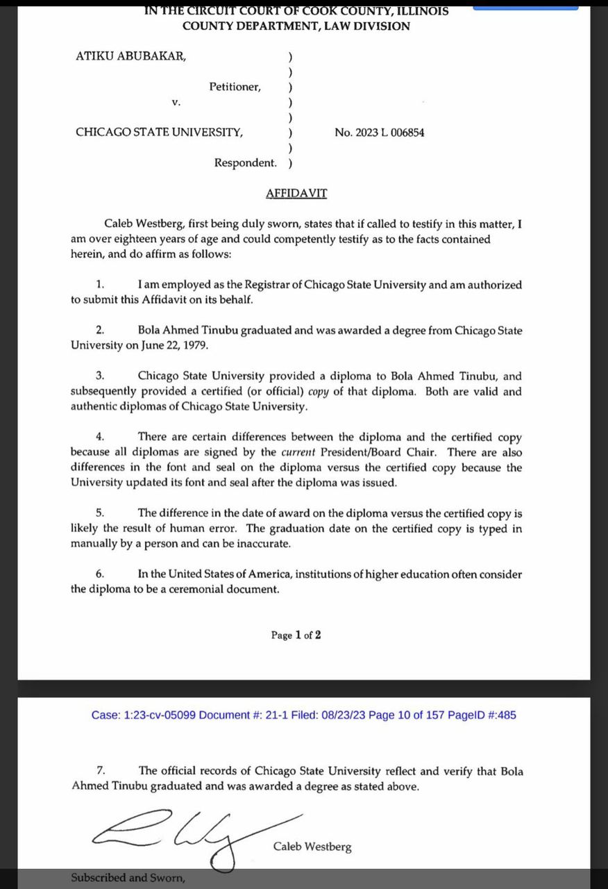 “CSU is confident in the veracity and integrity of our records regarding Tinubu’s completion of graduation requirements and degree certificate. The university is not a party to the Nigerian legal proceedings that spurred this request, and a U.S. federal judge will determine whether the university will provide further requested information.