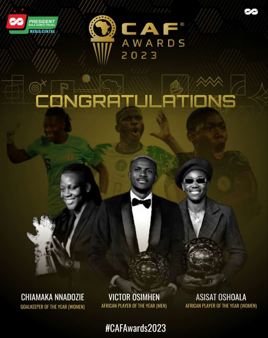 The President also celebrated the remarkable achievements of Asisat Oshoala of Nigeria’s Super Falcons, who clinched the 2023 CAF Women’s Player of The Year for the sixth time, and Chiamaka Nnadozie, who was awarded the Woman Goalkeeper of the Year, as well as the Super Falcons for emerging the Women’s National Team of the Year.