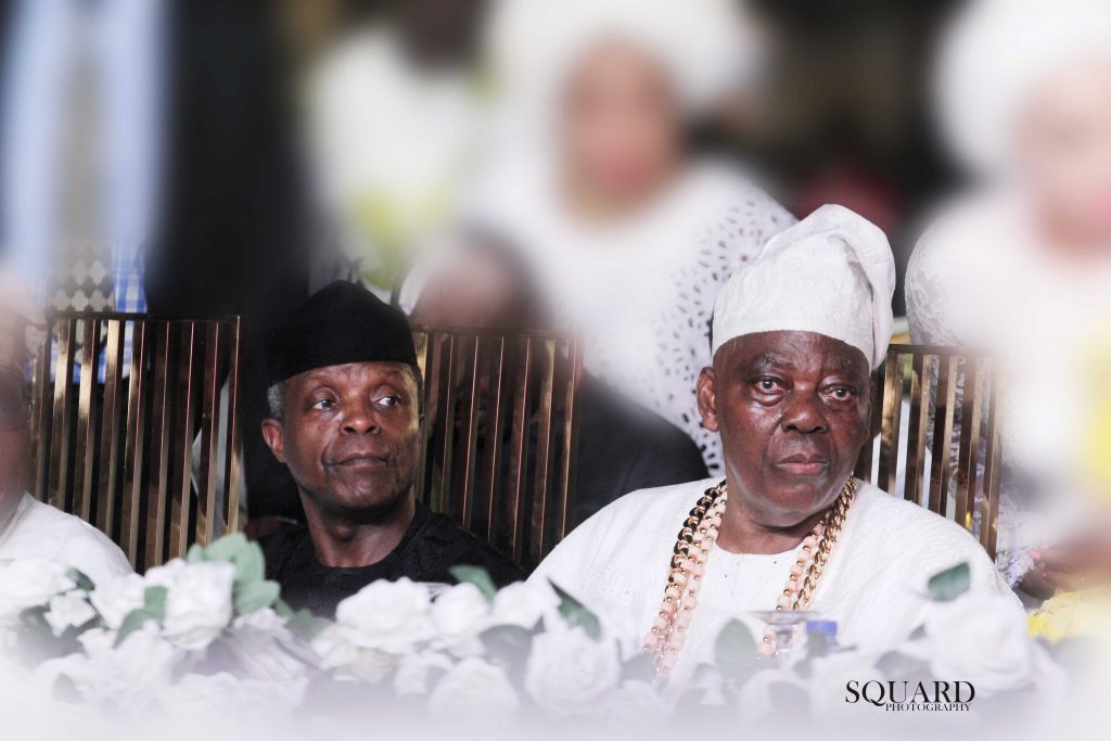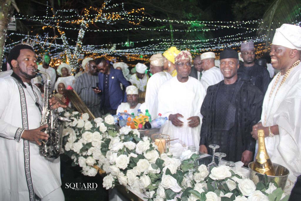 Top on the list that graced the event are Princess Dr. Toyin Kolade, Shina Peller, Mayor Akinpelu, Dele Momodu, Seye Kehinde, Mr Moses, Joke Shogunro, Aare Bashir Olawale Fakorede and lovely wife Yeye Aare Basirat Fakorede, Femi Pedro and his beautiful wife, Olagunsoye Oyinlola, Emeka Anyaoku, Prince Subomi Balogun, Justice Oguntade and wife, Dr. Samuel Adedoyin and wife, HRM. Oba Adeyeye Ogunnusi Ooni of Ife, HRM. Oba Adesina Adenugba, Ebumawe of Ago Iwoye, Sir (Dr.) Adebukunola Kesington Adebutu, Asiwaju Ahmed Bola Tinubu, Professor Yemi Osinbajo, Vice President, Federal Republic of Nigeria, Chief Olusegun Okiki Obasanjo, former President, Federal Republic of Nigeria, Prince Samuel Adedoyin and wife Toyin, Ambassador George Oguntade and wife Modupe, Kunle and Ojuolape Ojora, Chief Subomi and Abimbola Balogun, Oba Otudeko, Mr. Demola Seriki, Sir. Segun Okeowo and wife, Sir. Alex Duduyemi, Chief Mrs. Kemi Nelson, Mrs. Abimbola Jakande, Engr. Funso Joko Akin-George, Chief Emeka and Bunmi Anyaoku, Mr. Femi and Jumoke Pedro, Modele Sarafa Yusuff, Chief Bisi Olatilo, Chief Dele Momodu, Gbenga Adeyinka; TAA, Mrs. Daisy Danjuma, Mrs. Bolanle Ambode, wife of the former governor of Lagos State, Chief Olagunsoye Oyinlola, Prof. Wale and Sade Omole, Chief Alao and Kemi Akala, Chief Niyi Adebayo, Alhaji Aliko Dangote, Mr. Segun and Bola Awolowo, Chief Lai Mohammed, Minister of Information and Culture, Chief James Onanefe Ibori, former Governor of Delta State, Oba Adedapo Tejuoso, Osile Oke Ona Egba and his Three Oloris, Senator Prince Lanre Tejuoso, Sir. JK Randle, Olori Ladun Sijuade, Profess Pat Utomi, Dame Abimbola Fashola, Mrs. Sarah Sosan, Senator Ibikunle and Funso Amosu, HE Prince Dapo Abiodun, Executive Governor of Ogun State, Mrs. Bisi Fayemi, HRM. Oba Saheed Elegusi, Sina Peller, Evangelist Ebenezer Obey, King Sunny Ade, Chief Wasiu Ayinde, Sir Sina Peters, Mr. David Adeleke a.k.a Davido, Alhaji Musiliu Haruna Ishola, Chief Mrs. Nike Akande, Mr. Paul Ruwase, Chief Wale Babalakin, Adejoke Orelope Adefulire, Derin Osoba, Dr. Kadiri Obafemi Hamzat, Deputy Governor, Lagos State, Hon. Mudashiru Obasa, Speaker, Lagos State House of Assembly, Mrs. Maiden-Alex Ibru, Publisher, The Guardian Newspapers Limited, Olorogun Oscar Ibru, Chief Odein Ajumogobia, Mr. Babajide Sanwo-Olu, Executive Governor of Lagos State, Tessa Ikimi, Sena Anthony, Abiola Atanda, Evangelist Esther Ajayi and Husband, Mr. Kola Abiola, Mrs. Kemi Mimiko, Joe Odumakin, Members of Island Club, Lagos, Olorogun Sonny Kuku, John and Sola Momoh, Chief Florence Ita Giwa, Mr.&Mrs. Sunny Omoregie JP, and many society women who glowed in various exotic attires and fabrics.