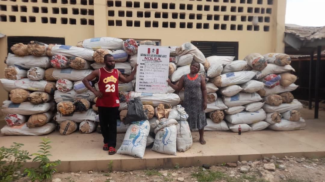 In Edo state, NDLEA officers supported by the military on Saturday 1st March raided the Okpuje community in Owan West LGA where they destroyed over 100 jumbo bags of skunk in warehouses and recovered a total of 1,409.5kg of the psychoactive substance for the prosecution of arrested suspects: Oikelomen Osere Monday, 38 and Glory Iroyo, 42.