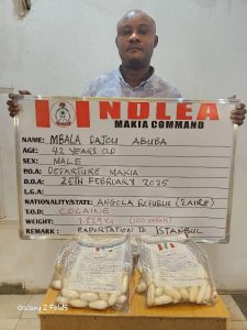 Operatives of the National Drug Law Enforcement Agency, NDLEA, have arrested a 42-year-old Angolan businessman Mbala Dajou Abuba at the Mallam Aminu Kano International Airport (MAKIA), Kano for attempting to traffic a large consignment of cocaine, which he ingested, to Istanbul Turkey.