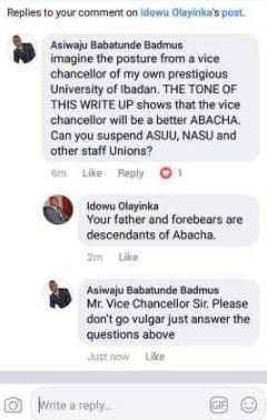 Badmus in reply wrote further: “Mr Vice Chancellor Sir. Please don’t go vulgar? just answer the questions above”.