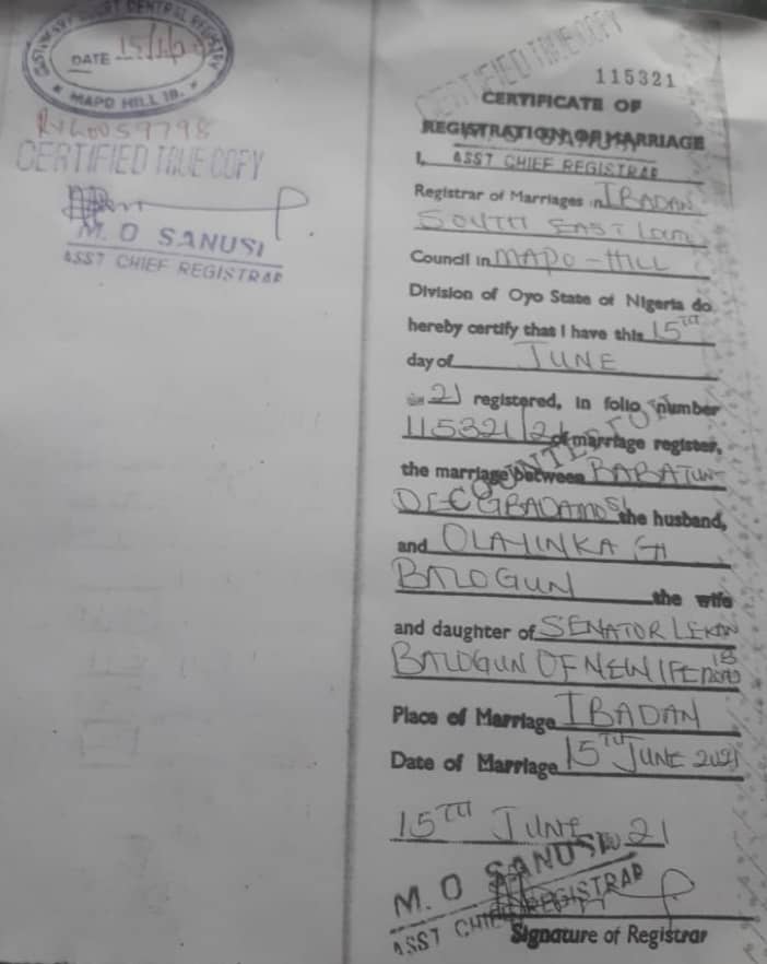 “At the time Gbadamosi was married to Sade Balogun, the true owner of Redbrick Homes and Amen Estate, he made his choices and followed them.