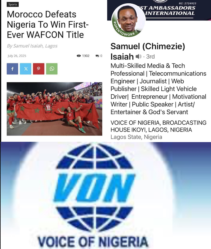 The Voice of Nigeria (VON) has issued a public apology following the publication of a false and premature report which incorrectly stated that Nigeria’s Super Falcons had lost the 2025 Women’s Africa Cup of Nations (WAFCON) final against Morocco, A match the Nigerian team eventually won in a dramatic comeback.