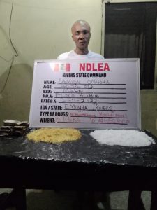 In Ondo, operatives seized 78kgs of cannabis from a dealer, Beauty Godwin at Ofosu along Benin-Ore express road, and another 264kgs from Abdul Rasheed Mohammed, and Abdul Rasheed Haruna at Sanusi camp 2 in Owo, while in Rivers state, anti-narcotics officers of the Agency arrested Damion Onuoha during a raid at Elele Alimini community, Emuoha LGA, where he was found with 1.6kgs of Methamphetamine as well as monetary exhibit amounting to six hundred and fifty thousand, seven hundred naira (N650,700.00).