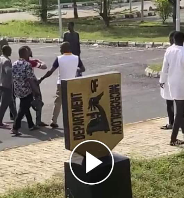 A video shared online has shown the moment a 400level microbiology student was arrested after beating up a female lecturer.