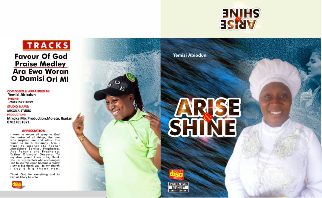Ibadan, Oyo State based gospel music singer, Yemisi Abiodun is set to publicly present her maiden album titled; ‘Arise and Shine’ on Saturday November 5, 2022.