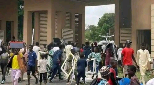 While there have been reports of attack on some security agents and some protesters, it has been reported that some hoodlums participating in the #EndBadGovernance protest on Thursday, looted and destroyed a yet to be commissioned Digital park in Kano state.