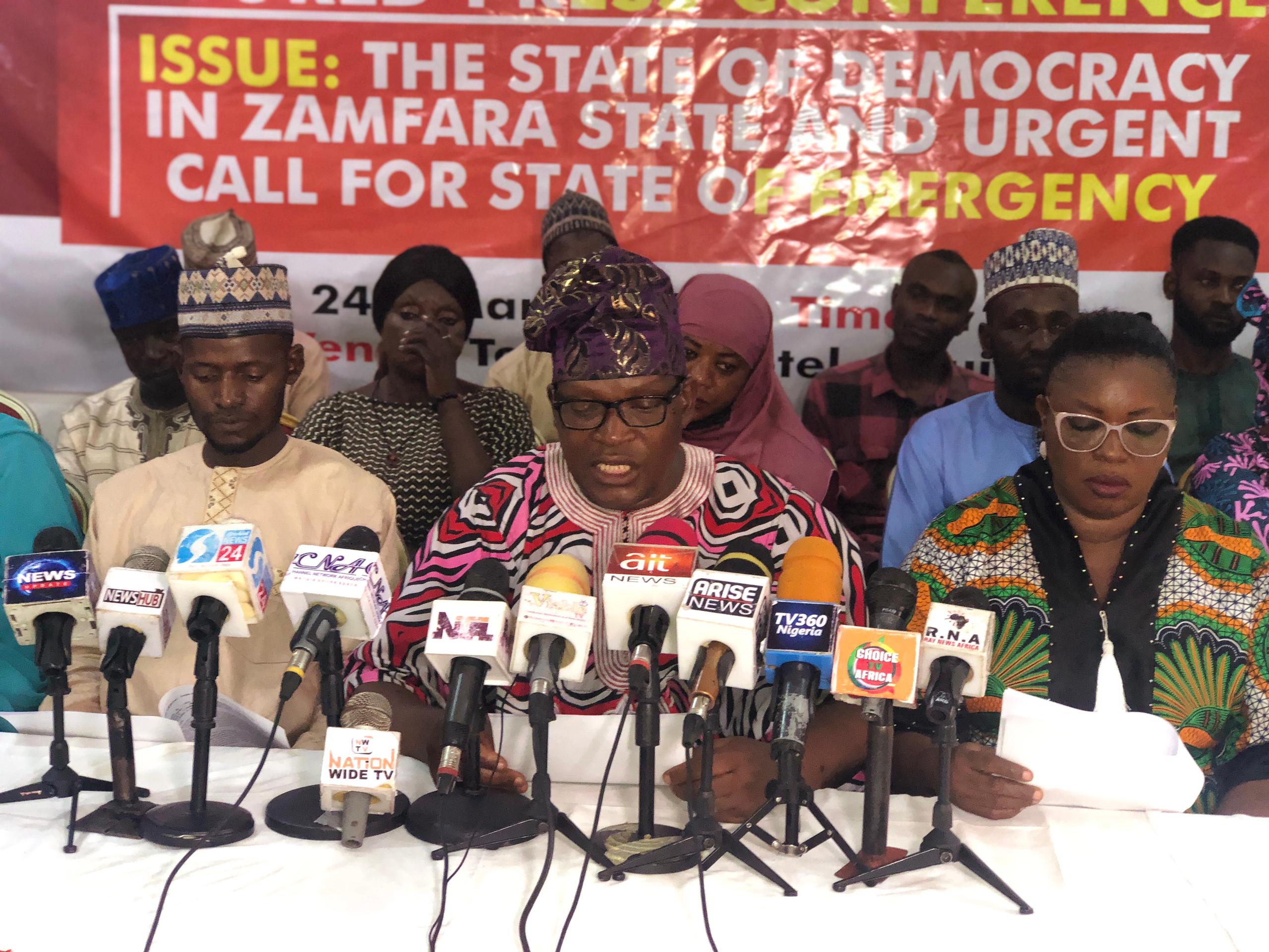 The group, in a press conference held in Abuja, called on President Bola Ahmed Tinubu to declare a state of emergency in Zamfara State for a minimum of six months.